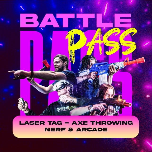 Two Hours of non-stop Combat Ops excitement! This pass includes the choice of Mission-Based Laser Tag, NERF-style tag, and Axe Throwing, plus unlimited standard arcade games (time-play)! Pass will expire 2 hours from time of check-in.
